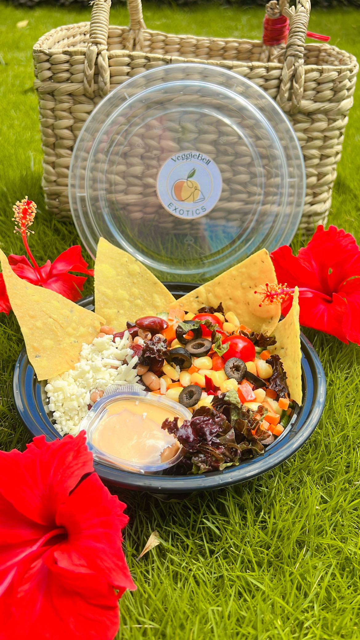 This vibrant salad bursts with flavors—crunchy veggies, tender black beans, and tangy pickled red onions—all drizzled with a sweet and tangy dressing. Ingredients : Salsa, Beans, Veggies, Guacamole, Sour cream, Nacho chips, Chedder.